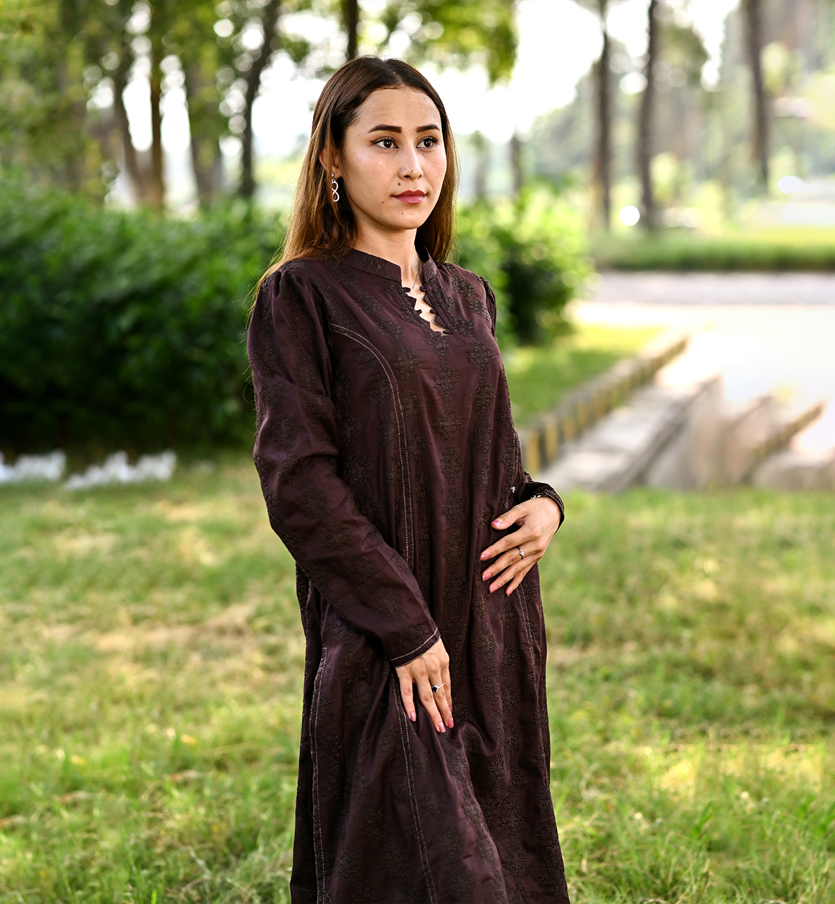 This dark brown, calf-length shirt in soft cotton lawn combines comfort with understated elegance. The breathable fabric drapes effortlessly, making it ideal for warm weather, while the rich, earthy hue adds depth and versatility to your wardrobe. The shirt’s relaxed fit allows for easy movement, and its length offers a sleek, elongated silhouette, perfect for pairing with wide leg trousers or skinny tights for a chic, everyday look.